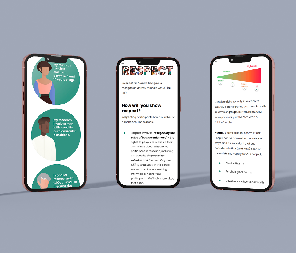We help researchers apply ethical principles and risk mitigation strategies to their own projects and explain how to write a quality ethics application.
